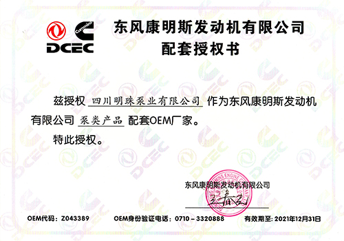 东方康明斯发动机配套授权书!
