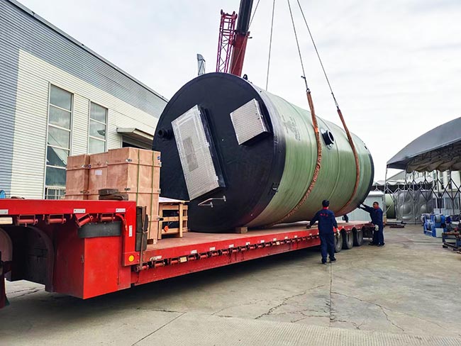 我司宜宾五粮液项目—大型玻璃钢一体化泵站装车发货中!